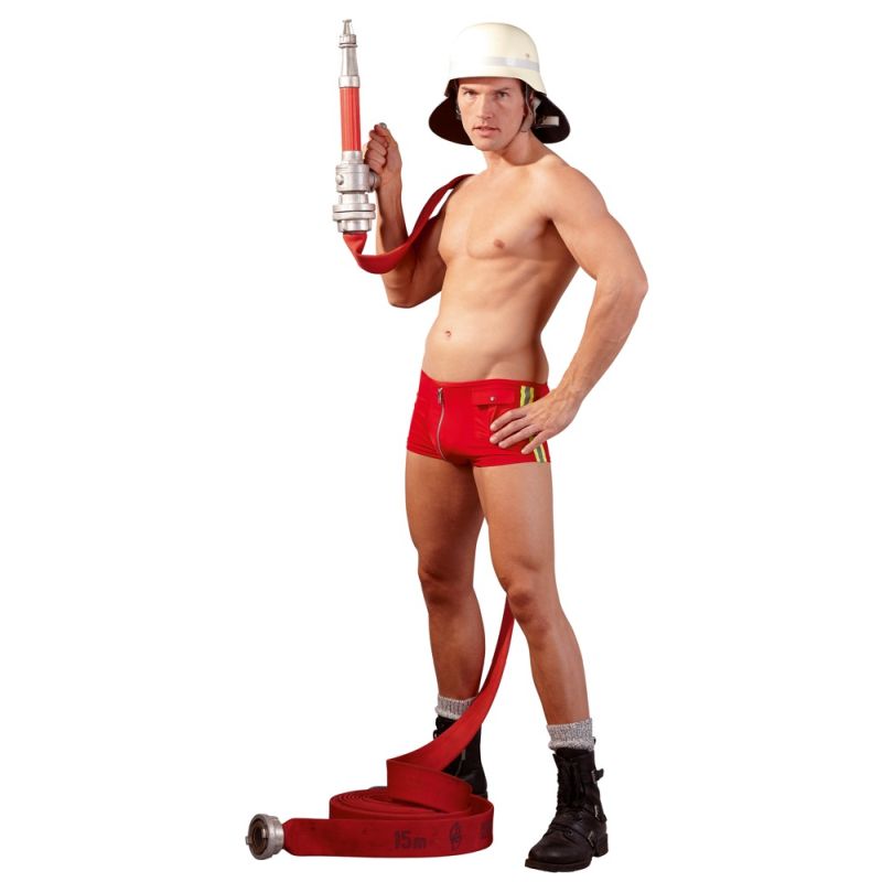Knallrote Pants im Feuerwehrmann-Look für fantasievolle Rollenspiele. Mit Reflektorstreifen, Ziertasche und raffiniertem Reißverschluss in der Front. Dazu sorgt die Swellfunktion für eine beeindruckende Frontwölbung.