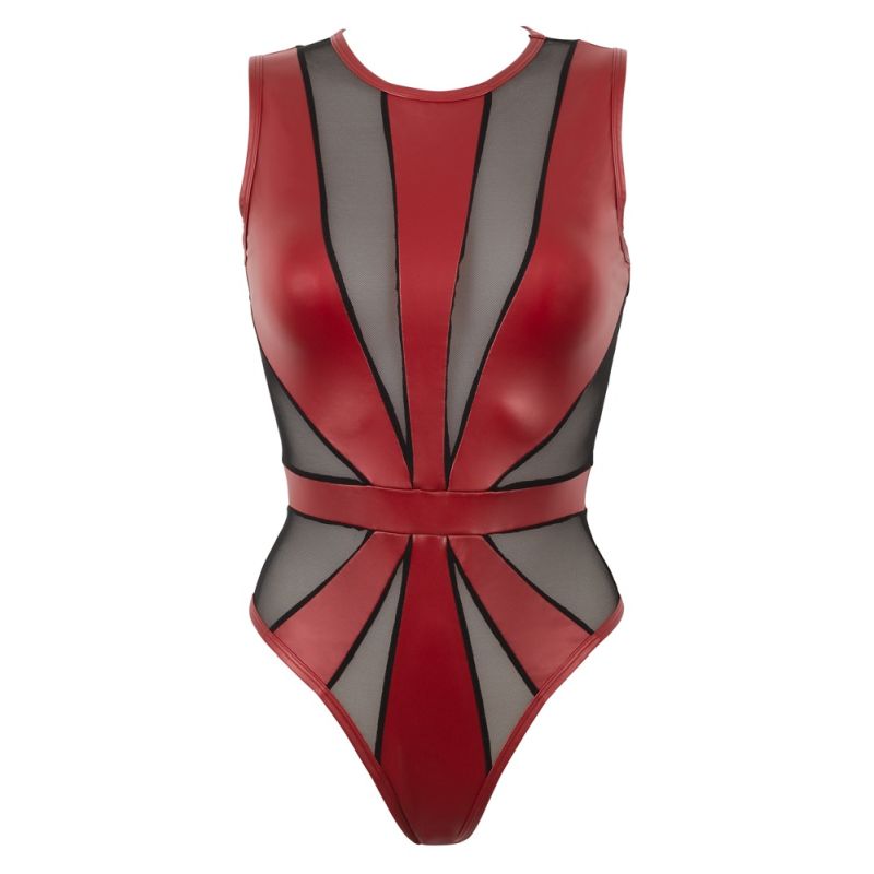 Body mit Netzeinsätzen vorne und hinten. Tailliert und körperbetont, aber mit einem hohen Elasthan-Anteil für die optimale Passform. Zum schnellen An- und Ausziehen ist dieser Body versehen mit Druckknöpfen im Schritt. Die Kehrseite besticht zudem mit einem String-Abschluss.