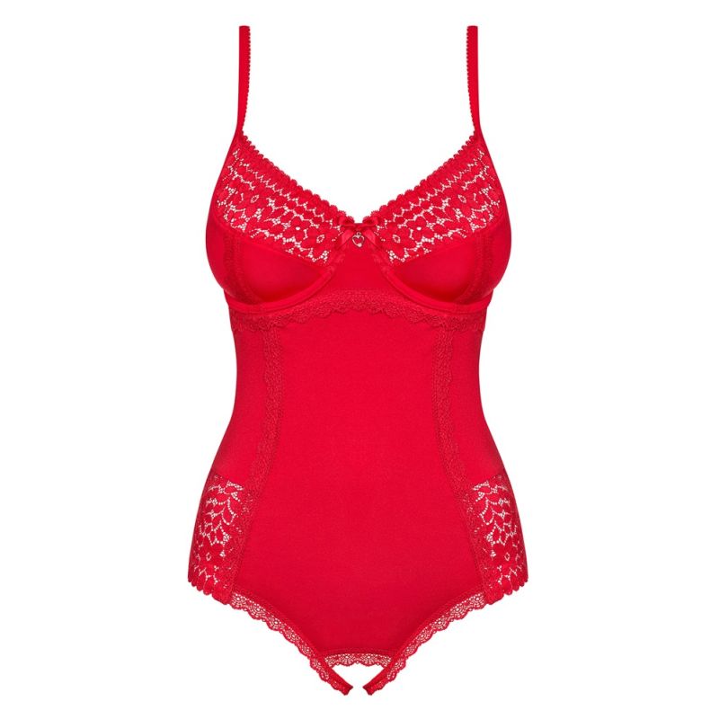 Dieser Body überzeugt mit seinem einladend offenen Schritt und der zarten Spitze an Cups und den Beinabschlüssen. Die krasse Signalfarbe zieht dann alle Aufmerksamkeit auf die Trägerin.