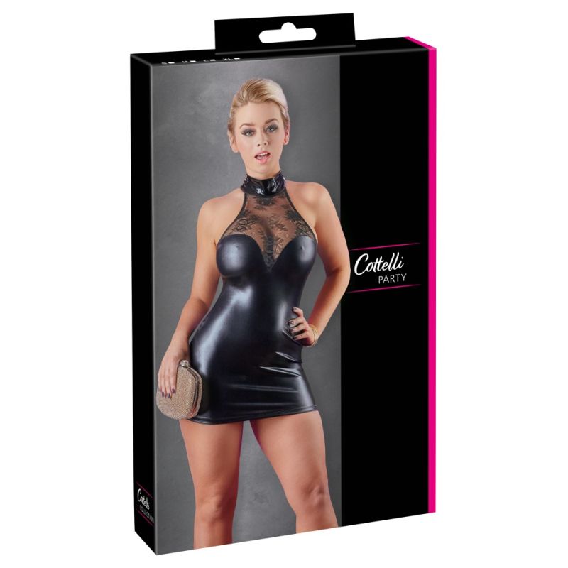 Minikleid aus Wetlook mit Spitzeneinsatz