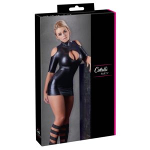Minikleid aus Wetlook mit Stehkragen, schulterfrei