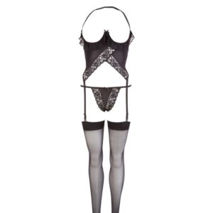 Dessous sind sehr beliebt und hier ist das perfekte Set aus glänzendem Satin für heiße Nächte! Busenfreies Strapshemd für ein aufregendes Decolleté, dazu passender Rio-String mit offenem Schritt. Beides mit zarter Spitzenverzierung. Inklusive Strümpfe.