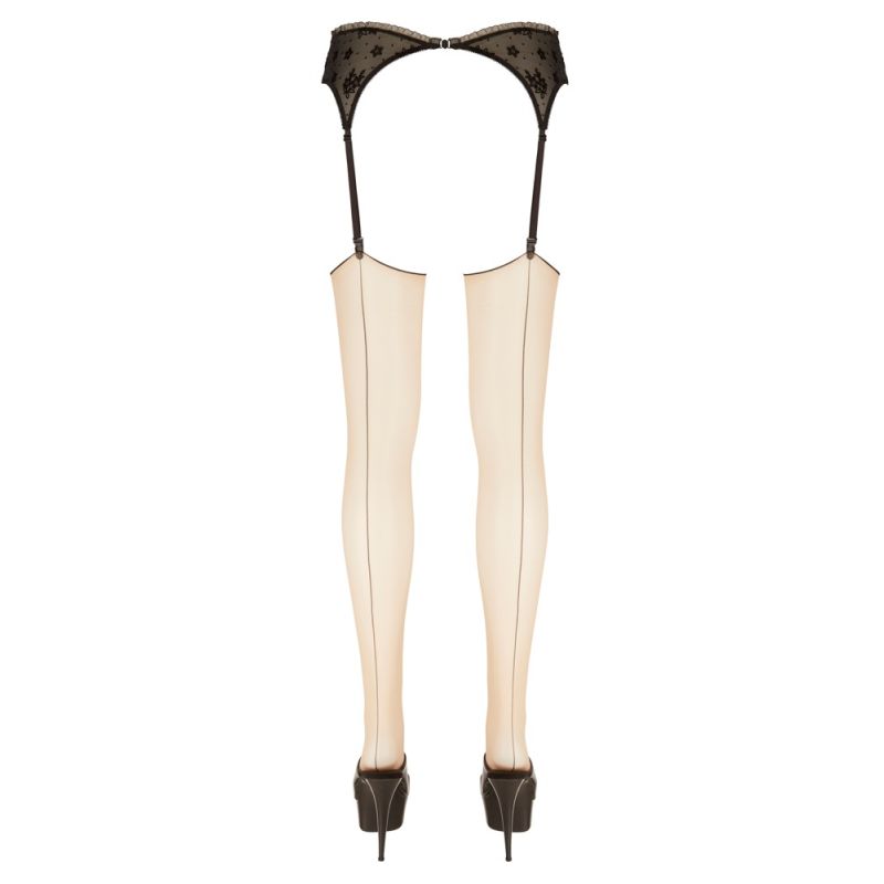 Straps-Strümpfe mit Ziernaht hinten für endlos lange Beine. Klassisch zum Anclipsen an den Strapsgurt und mit schlichtem, schwarz umkettelten Rand.