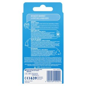 Transparentes, anatomisch geformtes Kondom mit Easy-on Passform für perfekten Sitz und leichteres Abrollen. Das spezielle Herstellungsverfahren verleiht außerdem einen angenehmen Duft. Extrafeucht mit Reservoir. Dermatologisch getestet.