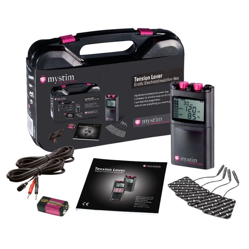 Digitales Reizstromgerät für E-Stimulation, die je nach Einstellung als sanftes Kribbeln, rhythmisches Pulsieren oder sinnliches Stoßen zu spüren ist. 2 getrennt regulierbare Kanäle, 7 Programme zur Befriedigung individueller Bedürfnisse; von zärtlich über intensiv bis hin zu hart. Zeitschaltuhr: 10, 20, 30, 40, 50 und 60 Minuten, Intensität, Impulsbreite und Impulsfrequenz können weitestgehend selbst bestimmt werden. Protokollierung der Anwendungsdauer und späteres Auslesen möglich. Werte können vom Nutzer voreingestellt werden, Tastensperre verhindert ein unbeabsichtigtes Verstellen von vorgespeicherten Einstellungen, extra großes Display für eine gute Lesbarkeit in allen Lebenslagen, Stecker um 360 Grad drehbar, was einen zu schnellen Kabelbruch verhindert, mit flexiblem Gürtelclip. Lieferumfang: 1 digitales Mystim Elektrostimulationsgerät, 1 stabiler Hartschalenkunststoffkoffer, 4 selbstklebende Elektroden, 2 Elektrodenkabel für selbstklebende Elektroden, 1 Batterie, 9V, 1 Gebrauchsanweisung in deutscher, englischer, französischer, niederländischer und spanischer Sprache.