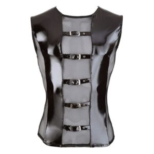 Glänzender, bi-elastischer Lack mit elastischen Netz-Einsätzen vorne und hinten. Eyecatcher sind zusätzlich die fünf Schnallenriemen in der Front. Schwarz. Lack 94% Polyester, 6% Elasthan, Polyurethan-Beschichtung; Netz 92% Polyester, 8% Elasthan.