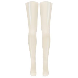 Halterlose Latex-Strümpfe mit Fuß. Im klassischen Cremeweiß. Hauteng und beinformend.
