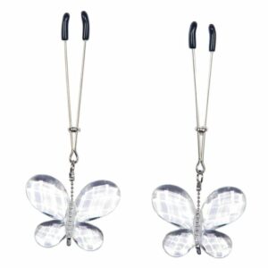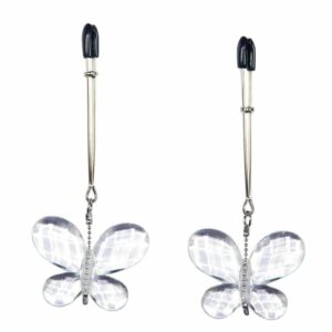 Schieberinge regulieren die Druckintensität der Pinzetten (Tweezer) von sanft bis hart. Mit transparenten Schmetterlingsanhängern. Tweezer ca. 7 cm lang. Material: Metall (verchromt), Acryl, PVC. 1 Paar.