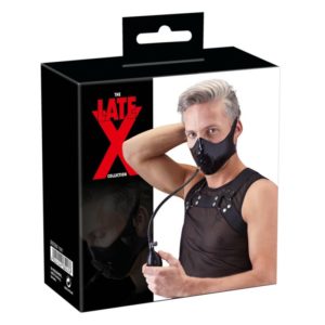 Pechschwarze Mund- und Nasenmaske mit aufblasbarem Latex-Knebel in authentischer Penisform – inklusive Eichel und Äderung. Neben seinem besonderen Design überzeugt der Knebel auch durch seinen perfekten Halt – gut regulierbar über 2 verstellbare Riemen für den Kopf. Die Größe des Knebels kann mit Hilfe des Pumpballs variiert werden, der über einen Schlauch mit der Vorderseite der Maske verbunden ist.