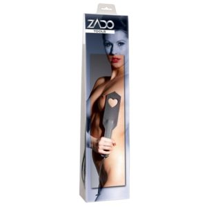 Schlagpaddel mit ausgestanztem Herz. Aus doppelt gearbeitetem, schwarzen Leder (3 mm dick!). Griff verstärkt. Gesamt 30 cm lang.