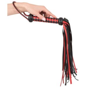 Handliche Striemenpeitsche aus weichem und tierleidfreiem Lederimitat. Mit praktischer Handschlaufe für den optimalen Halt. Perfekt geeignet für sanfte Streicheleinheiten, bis hin zu harten Züchtigungen. Die zweifarbige Optik wird durch die aufwendige Flechtung verstärkt.