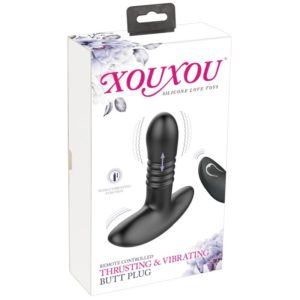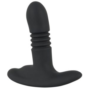 Reizstrukturierter Vibro-Analplug mit Stoßfunktion und Perineum-Stimulationssteg. 12 abwechslungsreiche Vibrations-/Stoßmodi sind mit der kabellosen Fernbedienung bequem steuerbar – auch vom Partner! Dank der cleveren Memory Funktion merkt sich der Plug den zuletzt eingestellten Modus und legt mit diesem beim erneuten Einschalten sofort wieder los. Auch in feucht-fröhlichen Gefilden, denn der Thrusting & Vibrating Prostate Plug ist wasserdicht. Der stoßfreudige Vibroplug ist rundum aus weichem Silikonmaterial gefertigt und sorgt beim Tragen und Spielen für ein sehr angenehmes Hautgefühl. Wiederaufladbar – USB-Ladekabel liegt bei. Inklusive hochwertigem Aufbewahrungsbeutel. Batterie für die Fernbedienung bitte extra bestellen: 1 x AAA.