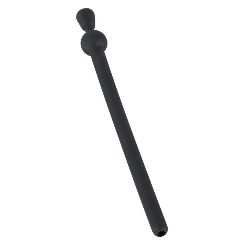 Flexibler Dilator mit Stopper zum Verschließen. Innen hohl zum Urinieren und Ejakulieren. Gesamtlänge 12 cm, Einführtiefe 10,7 cm, Ø 0,7 cm. Silikon.