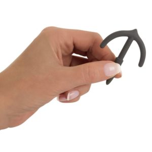 Flexibler blauer Penisplug im Anker-Design. Gesamtlänge 6,1 cm, Einführtiefe 5 cm, Ø max. 0,8 cm. Silikon mit PU-Beschichtung (Soft Touch).