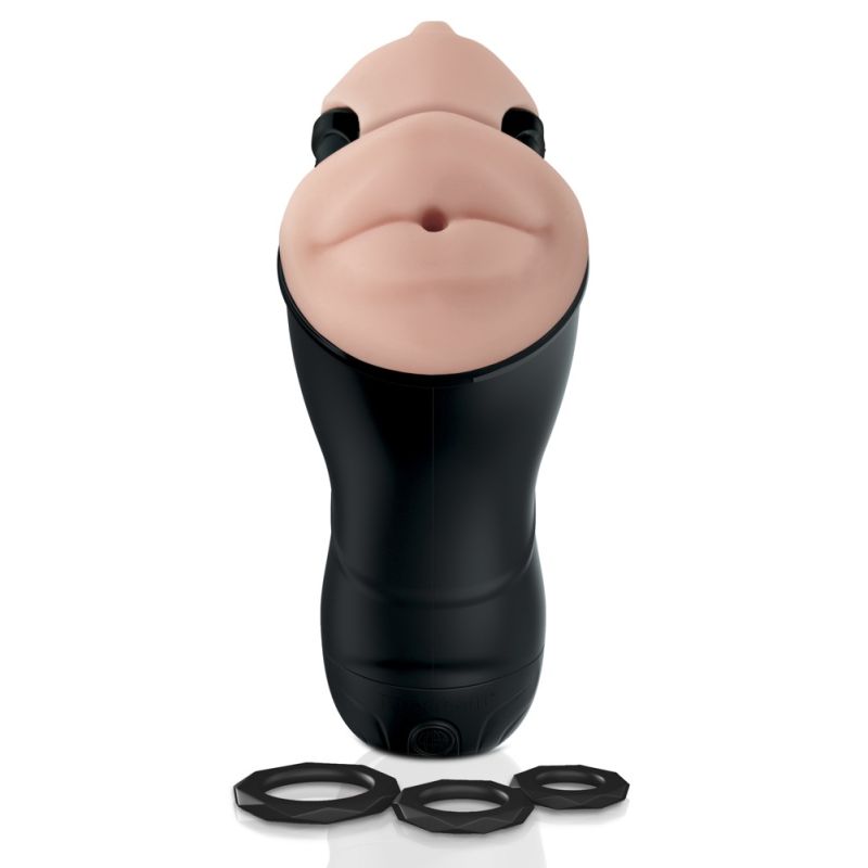 Handlicher Masturbator mit 2 naturgetreuen Lustöffnungen: Mund und Vagina. Beide Lustkanäle aus hautähnlichem Fanta Flesh-Material und innen mit Stimulationsstruktur für ein nahezu lebensechtes Lusterlebnis. Mit eingeschalteter Vibration wird das Soloerlebnis noch abenteuerlicher! Zusätzlich sorgt die Vakuum-Öffnung für einen erregenden Unterdruck und durch Zusammendrücken des Masturbators können realistische Sauggefühle erzeugt werden. Für die leichte Reinigung ist der untere Teil des Masturbators abschraubbar. Inklusive 3 Penisringe. (Batterien bitte extra bestellen: 2 x AAA).