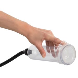 Unterdruck-Pumpe für ein effektives Penis- und Potenz-Training mit dauerhaftem Erfolg. Klarsicht-Vakuum-Zylinder 20 cm lang, Einführtiefe 18,4 cm, Ø innen 5,3 cm, Ø außen 5,5-5,8 cm. Ø Sleeve-Öffnung 2,5 cm (dehnbar). Handlicher Pumpball mit Sicherheits-Druckventil.