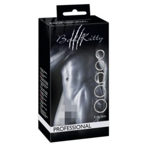 Set aus 5 nahtlos gefertigten Penisringen. Ø 3,1–5 cm. Material: Carbonstahl.