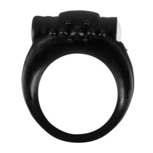 Der schwarze Penisring umschlingt fest das Glied, während der beiliegende herausnehmbare Mini-Vibrator (ON/OFF-Button) stimuliert. Ø 3,2 cm (stark dehnbar). Material: Silikon, ABS (Bullet). Inklusive Knopfzellenbatterien.