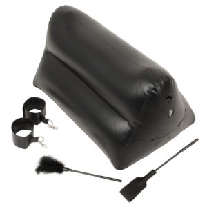 Dieses Liebeskissen eignet sich perfekt für alle Paare, die mit neuen Stellungen oder leichtem Bondage experimentieren wollen. Es ist schnell aufgeblasen und kann in vielen Positionen genutzt werden für gemeinsamen Sex-Spaß. An den Seiten bietet es jeweils die Möglichkeit über einen Karabiner die mitgelieferten Handschellen zu befestigen. In Kombination mit dem beiliegenden Paddel und dem Federstab lädt es so zu aufregenden Bondage-Spielen oder Spanking-Sessions ein. Und sollte im Eifer des Gefechts mal ein kleines Loch entstehen, ist dieses mit den 2 Reperaturflicken und dem Klebstoff schnell wieder verschlossen.
