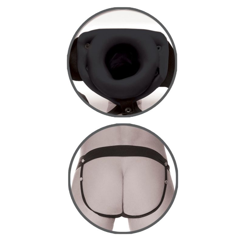 Hohler, leicht gebogener Naturdildo fest platziert an größenverstellbarem, elastischem Umschnallgurt. Perfekt für Strap-on-Einsteiger! Trägt ER für mehr Umfang und Länge sowie Stärke und Steife. Trägt SIE zum Verwöhnen von ihr/ihm.