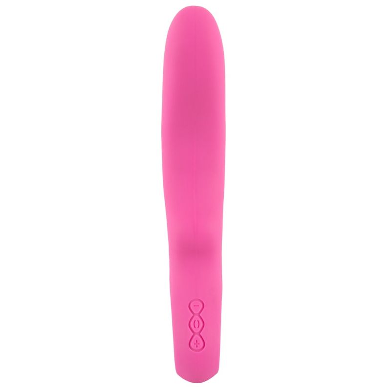 Leicht gebogener Vibrator mit prallem (G-Punkt-) Köpfchen und ausgeprägter Welle am Schaftende zur speziellen Klitoris- bzw. Anusstimulation. 2 kraftvolle, getrennt steuerbare Motoren (einer im Köpfchen, einer in der Welle) sorgen dabei mit jeweils 10 Vibrationsmodi und 5 Geschwindigkeiten für vergnügliche Abwechslung. Dank des praktischen Halteringes lässt sich der Vibrator bei vaginalen und analen Stimulationen sowie während des Vorspiels wunderbar führen und steuern. Seine seidig-weiche Oberflächenbeschichtung sorgt dabei für ein sehr angenehmes Hautgefühl. Wiederaufladbar – USB-Ladekabel liegt bei.