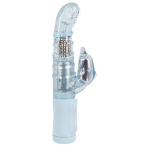 Seine anatomisch ideal gekrümmte, rotierende Noppen-Spitze reizt gezielt Ihren G-Punkt. Und die sich drehenden Metallkugeln im Schaft massieren orgasmuswirksam den Liebeskanal, der stark vibrierende Dolphin-Reizer stimuliert Ihren Lustknopf. Hellblaue. Gesamtlänge 21 cm, Ø 3 cm. Vibration in 7 Stufen, Rechts/Links-Rotation jeweils in 3 Stufen per Knopfdruck steuerbar. Körperfreundliches Material: TPE, ABS. (Batterien bitte extra bestellen: 3 x Micro).