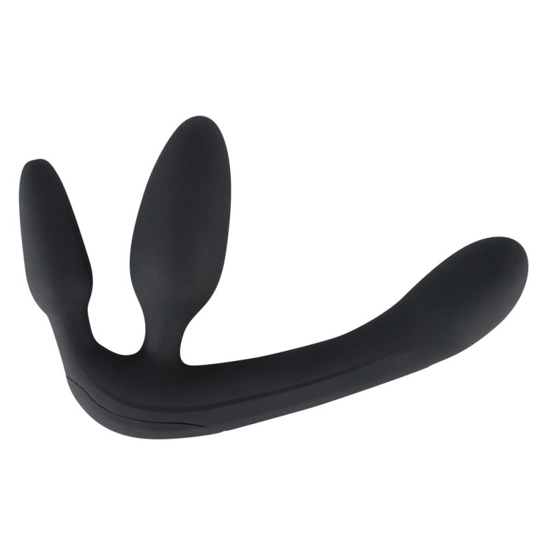 Raffiniertes Triple-Toy für Rollenspiele, bei denen der aktive Part doppelt, sowie der passive Part zeitgleich stimuliert wird. SIE führt sich den Vaginalvibrator und Analplug ein und kann dann mit dem dritten Vibrator genussvoll zustoßen. 7 Vibrationsmodi mit 2 Motoren sorgen dabei für abwechslungsreichen Spaß und sind über die kabellose Fernbedienung bequem steuerbar. Auch in der Badewanne oder unter der Dusche, denn das Trio ist wasserdicht und auf Reisen ist dieses Toy dank der Tastensperre sehr diskret. USB-Ladekabel inklusive.
