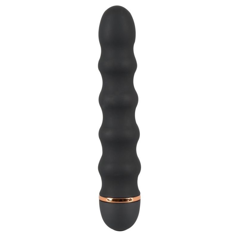 Batteriebetriebener Rillenvibrator mit Soft Touch Textur und kupferfarbenem Zierring. Mit sinnlich gewelltem Schaft für eine stimulationsintensive Oberfläche. 20 kraftvolle Vibrationsmodi sorgen für ein abwechslungsreiches Liebesspiel. Der Rillenvibrator ist angenehm biegsam und bequem per Knopfdruck steuerbar. Ein smarter Allrounder für jede erotische Gelegenheit!
