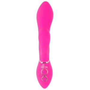 Optimal gebogener Vibrator mit Klitoris-Stimulator für gleichzeitige vaginale und klitorale Stimulationen. Dabei unglaublich flexibel, sodass der Kontakt zu G-Punkt und Klitoris immer gewährleistet ist. 10 Vibrationsmodi bequem per Knopfdruck sorgen bei der Doppel-Stimulation für abwechslungsreiches Vergnügen. Der Vibrator ist rundum aus weichem Silikonmaterial gefertigt und sorgt beim Verwöhnen für ein sehr angenehmes Hautgefühl. Da der Vibrator wasserdicht ist, steht dem Vibro-Genuss auch unter Wasser nichts im Wege. Wiederaufladbar – USB-Ladekabel liegt bei.