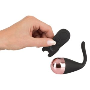 Dieses äußerst schöne Vibro-Ei bietet ein doppeltes Verwöhnprogramm, denn es verwöhnt nicht nur vaginal, sondern mit dem kleinen Reizarm auch klitoral. Zur Auswahl stehen 4 Vibrationsmodi in jeweils 4 Vibrationsgeschwindigkeiten, die getrennt voneinander per Knopfdruck an der Fernbedienung (Reichweite bis zu 5 Meter) steuerbar sind. Ausgehend vom Ei breiten sich die Vibrationen bis in den starren Reizarm aus, um auch Ihre Lustperle zu verwöhnen. Für noch mehr Komfort und sanftere Stimulation sorgt das beiliegende Silikonkissen, welches über die Spitze des Klitorisreizarms gestülpt werden kann. Das Vibro-Ei ist nicht nur wasserdicht gemäß IPX7, sondern auch durch Induktion wiederaufladbar mit beiliegender Ladeschale und USB-Kabel. Ladezeit ca. 180 Minuten, Laufzeit ca. 45 Minuten, Stand-by ca. 120 Minuten. Eine Knopfzelle für die Fernbedienung liegt bei.